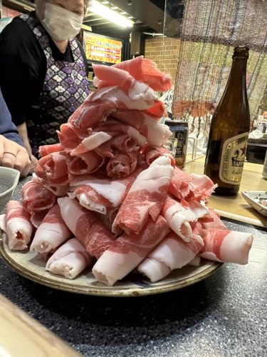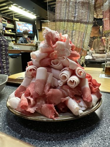 こちらもお鍋にすべて一気にいれてしゃぶしゃぶしていきます。一回目のお肉でお腹が少しは満たされているはずなのにこれまた一気に平らげてしまいました!