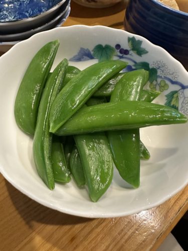 スナップエンドウもしっかりいただいておきましょう!ポリっとした食感が素晴らしいですね!テレビをみながらぼりぼりをいただいちゃいました。