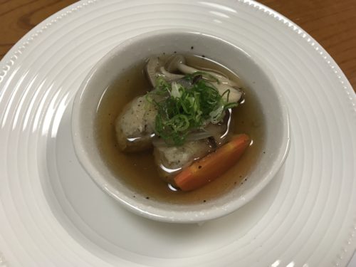 この日はすでに生ビールが終わっていたので瓶ビールをお願いしました!冷えてておいしい~!先付は温かいスープ仕立てのつみれ!これがめちゃめちゃおいしい~!本当に最高でした~!