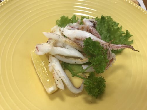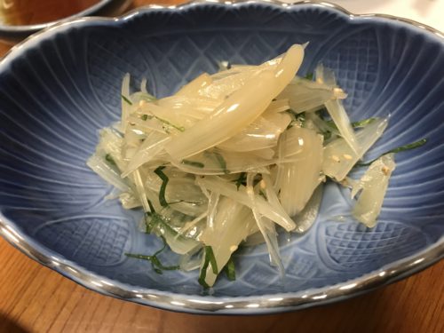 お刺身の盛り合わせをお願いしました!たこ、鯛、カツオのタタキ、イカ、そしてさえずりが入っていました!さえずりはなかなかお刺身で食べる機会がないですからね~!どれもとってもおいしい~!鯛の皮は別にしてくださっていました!これがまたお酒にあいますね~!