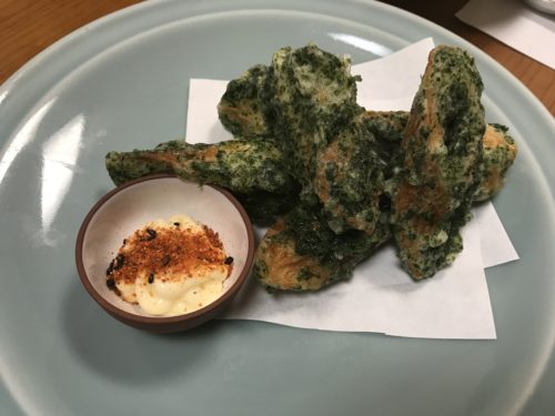 好物のちくわの磯辺揚げがこれまたたっぷり青のりがかかっていてびっくり!超おいしい!