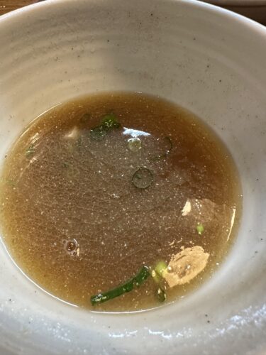 スープ割?わかんなかったですが、お願いしてみました。待っている間にメニューをみたらありました!残ったつけだれを鶏がらスープで割ってくださるんですって!