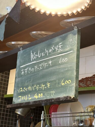 黒板をみてみるとプリンが!大好物のプリン!そして一つだとさみしいのであずきのチーズケーキもお願いしました。