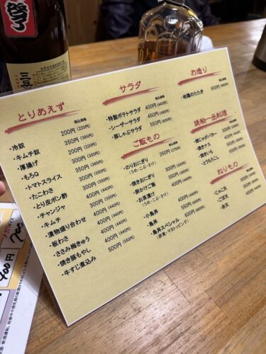 メニューをみてみるとかなり安めの設定ですね!このお値段で焼鳥がいただけるお店ってなかなか最近ないですよね~!常連さんたちは一升瓶の焼酎を入れていらっしゃいました。(笑)