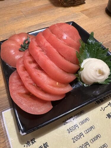 乾杯した後にまずはトマトスライスを!大きなトマトにびっくり!さっぱりとして美味しいトマトでした~!