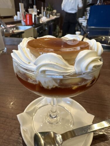 この日座った席からマスターがプリンを丁寧に整えてくださっているのが垣間見えました。プリンに添えるホイップクリームも丁寧に!プリンのまわりに添えてくださいました。