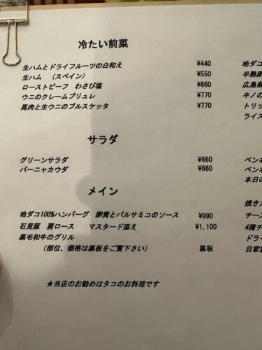 なぜかタコのお料理が多いな~と思ったらメニューに(笑)。
