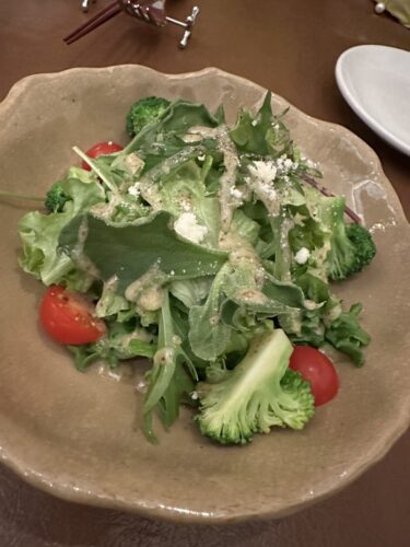 まずはグリーンサラダからいただきます。アイスプラントが入っていました!とっても美味しいです!