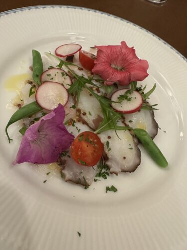 続いてタコのカルパッチョをお願いしました!以前もタコのカルパッチョをいただいたのですがとっても美味しかったんですよね~!今回もこれまた美味しい~!粒マスタードを使ってくださっているのがうれしいです!
