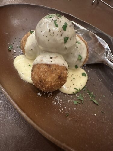 こちらも前回美味しかったライスコロッケをお願いしました!あっつあつなので気を付けながらいただかないとやけどしちゃいますよ~!チーズもたっぷりかかっていてめちゃ美味しい~!中に入っているライスは五穀米かな?