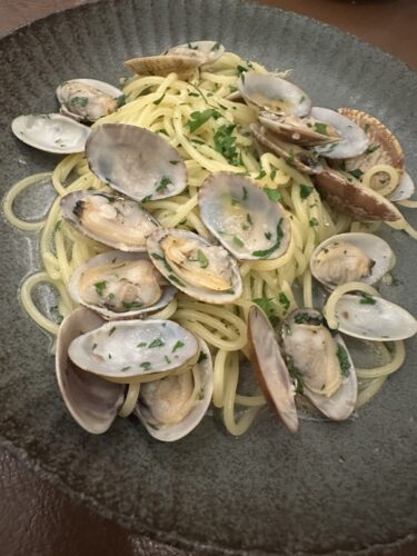 パスタはあさりとイタリアンパセリのガーリックをお願いしました!あさりがたっぷり入っています。ガーリック風味のオイルがたまらない~!麺はもちろんアルデンテ!生麺なのかな~、めっちゃめちゃ美味しいです!