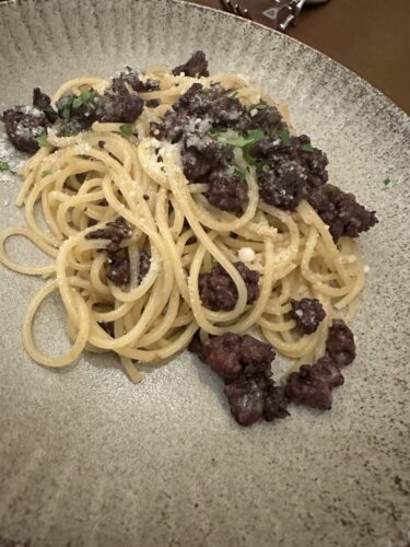 そして最後は地ダコ100%ミートソースをいただきます!ミートソースのミートがタコになっているようです。これはアイディアメニューですよね~!最高!