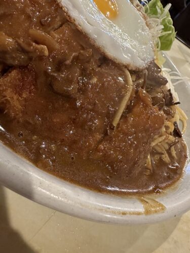 そしてカツをいただきました~!このカレーソースとの相性抜群です!パスタもフライパンで炒めてくださっているのでパスタがほんの少しだけ焦がしてあるんです。これがたまんない~!食感がよくなります!