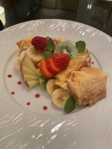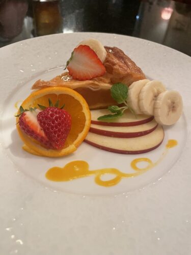 テーブル席でいろいろとお話をしているとちょっと甘い物でもということでスイーツをお願いしました!まずはパンペリュドュを!いわゆるフレンチトーストですね!マスターは本場フランスで学ばれていますのでパンペリュドュも本場仕込み!めっちゃめちゃ美味しい~!