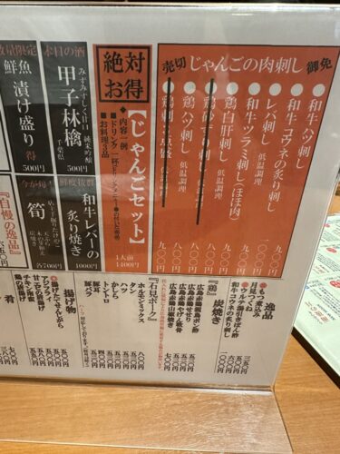 メニューをみてみるとお肉のお刺身など特徴的なメニューがずらり!美味しいものをそろえました~という雰囲気が感じられます。