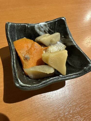 先付は煮しめが!これが美味しくって料理への期待が高まりました。