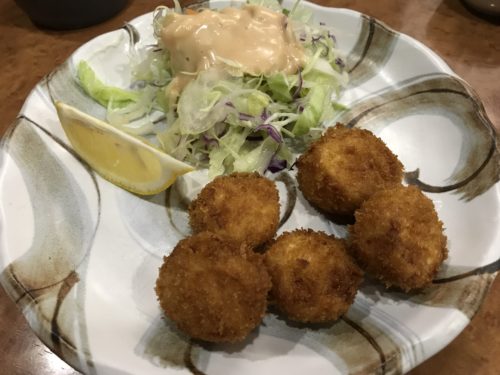 さんまを焼いていただいて秋の名残を感じながらつづいてホタテのフライをお願いしました!ホタテってあまり食べないんですが、フライでいただけるのは珍しい!懐かしい味がしました~!うまい!