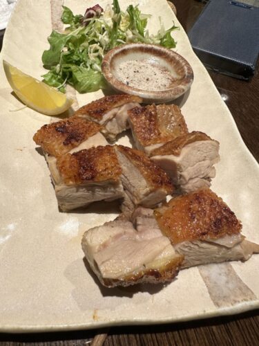 続いて鶏肉を焼いてもらいました!青森のブランド地鶏、シャモロック!皮の脂の甘みも強くて美味しい~!ほんと大好きです!