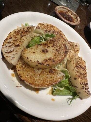 もう一つおすすめの野菜は山芋!山芋を高温の鉄板で焼き上げるとシャキっとした食感がのこったままちゃんと火が通るんですよね~!甘みもあってほんと最高!食感とお酒の相性も抜群です!