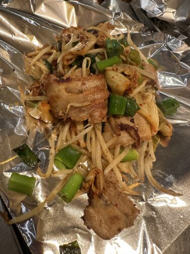 続いて豚キムチをいただきます。キムチが入ると豚もやし炒めががらりと変わりますよね~!食欲がすすむ起爆剤としてキムチはほんと秀逸です!最高に美味しいです!
