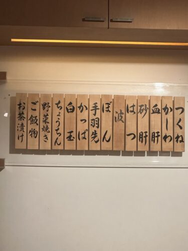 ものすごく元気に迎えてくださいました。生ビールをお願いして乾杯!大将自らお料理の説明をしてくださいました。ストップというまで出てくるとのことです。メニューが掲げてありましたがストップっていう必要なないかな~って。でも後でびっくり、、、笑。