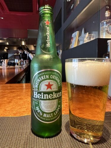 中に入っていくとオープンキッチンが!いい感じですね~!カウンターに座らせていただいてまずは飲み物を、、、勢いでハイネケンを!(笑)