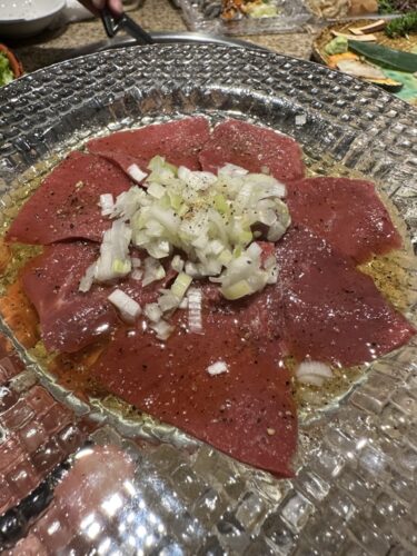 続いてお肉が登場しました!上タン、クリミ、上ミノ、ゲタで登場です!まずは上タンからいただきましょう!ある程度焼いて少しレアな状態でいただきます。柔らかくて美味しい~!一緒に行った方々がめちゃくちゃ美味しい~って喜んでおられました。