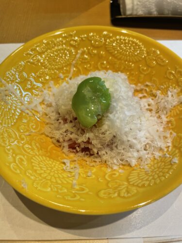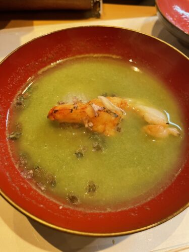 粟麩ってなかなかいただく機会がないですね~!お出汁は海老のミソがしっかりきいていて美味しい~!ほんと美味しいすりながしでした!
