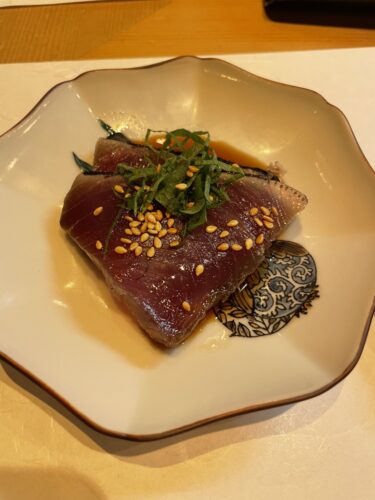 地物のタコはゴマ油でいただきます。ごま油でタコをいただくって最初知らなかったのですが尾前さんで知ることになってそこからはまっています!めちゃ美味しいですよ!