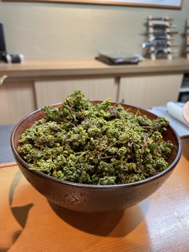 山椒と一緒にお肉をいただいてみると、もう最高!こういう組み合わせもあるんですね~!それにしても1キロウン万円という山椒があるなんて!(笑)