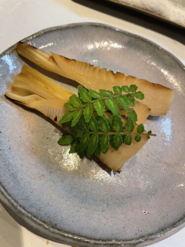 もう一度タケノコが登場しました!今度は素焼きで木の芽と一緒にいただきます。とっても美味しい~!
