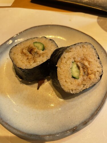 この日は鯖寿司ではなくてアナゴときゅうりの巻物!めちゃめちゃ美味しい!