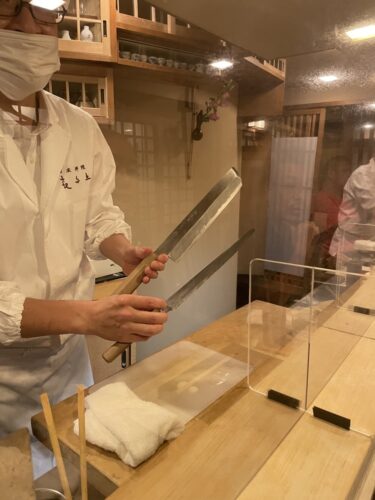包丁のお話もしていただきました。こういうお話ってなかなか聞けないですからね~、丁寧に説明してくださいます。使えば使うほど歯がどんどんちびていくのがわかりますね。