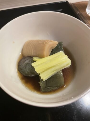 炊き合わせはタケノコ、黄ニラ、なすでした!