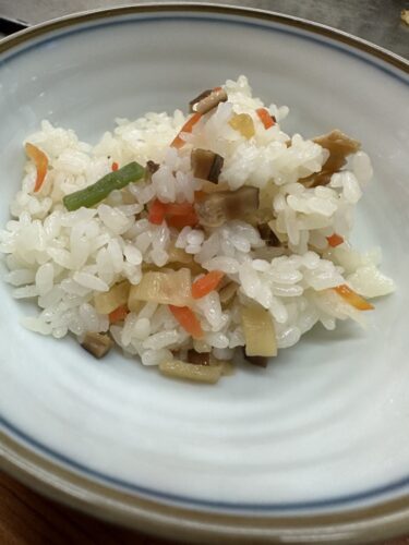 食べれます~!この日はごはんを炊いていらっしゃったようです!このちらし寿司なんとレトルトなんだそうです。炊けたごはんに混ぜるだけですぐに出来上がるんですって!しかも広島の地元の企業さんが開発されたんだとか!いただいてみると美味しい~!酸味がそこまで強くないのでお好みでお酢を足されてもいいかもです!