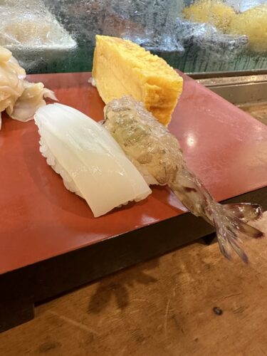 続いてイカと海老が登場しました!どちらも美味しいですね~!基本に忠実な素直なお寿司って感じがしていいですね~!