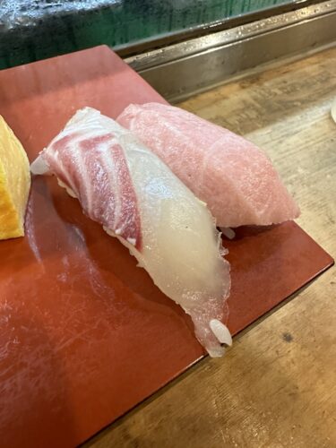 ここで鯛とトロが登場しました!かなりいいトロですよ~、口の中ですっととけていますね~!鯛も甘みがあって美味しい~!