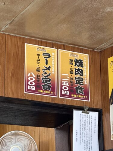 メニューをみてみるとラーメン定食と焼肉定食がありました。