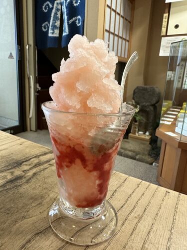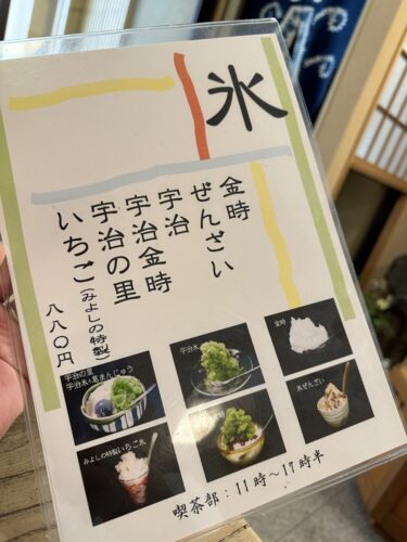 お店に入ってみると、、、かき氷始まっていました!みよしのさんのかき氷美味しいですからね~!メニューをみながら私はいちごをお願いしました。いちごは結構早めに売り切れちゃいますからね~!一緒に行った方は宇治抹茶をお願いされていました。