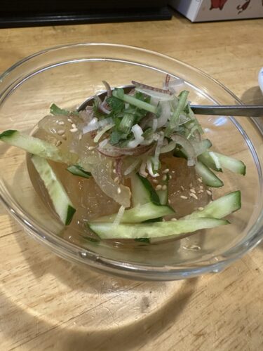 酒のあてとしてくらげ酢をお願いしました!薬味もしっかり入っていてとっても美味しい~!薬味がついているのとついていないのとでは全然違ってきますからね~!