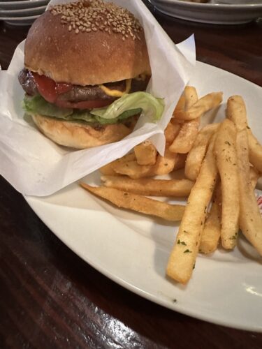 そうこうしていたらハンバーガーが出来上がりました!まずは私がお願いした定番のケンビーズバーガーを!フレンチフライも一緒についてきます!私はフレンチフライが大好物です!
