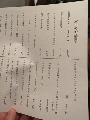 メニューをみてみるとこの日もとってもおいしそうなものばかり~!ミラさんはお刺身が苦手なのですがお刺身以外のメニューが豊富なので助かります。