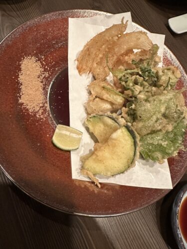 旬野菜の天ぷらもいただきます。とにかく野菜が美味しい~!ミラさんにぴったりのメニュー構成で喜んでくれました。ミラさんの妹さんのミーアさんも一緒だったのですが、野菜大好きっておっしゃっていました!