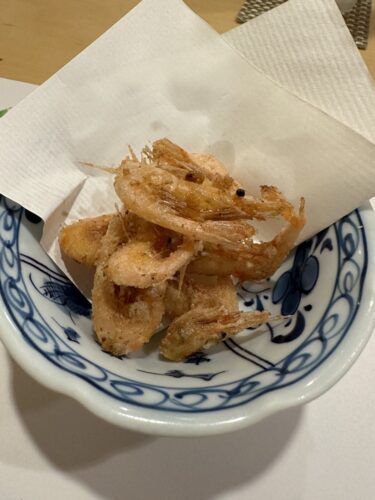 まずは甘えびの子供の唐揚げから!これめっちゃ美味しい~!お酒にもぴったり!