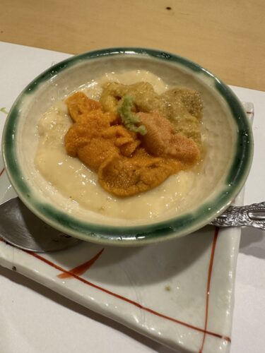 こういうのうれしいですよね~!どちらも美味しいですが、紫ウニはコクをより強く感じました。日本酒と一緒にいただくと最高ですよ~!