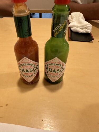 ということでグリーンのほうをかけていただいてみました、、、あっ!なるほど!合点がいきました!トロがものすごく脂がのっているのでタバスコがあいます!なるほど~!