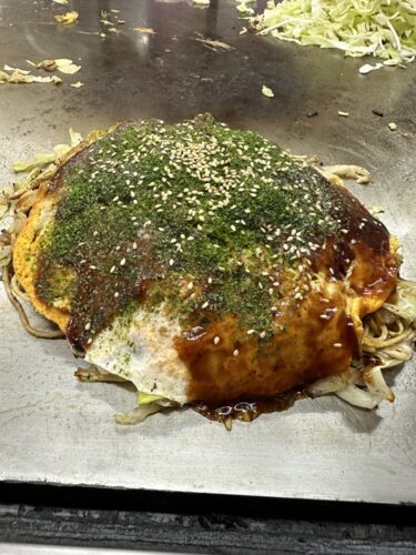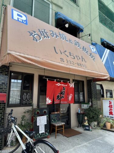 出来上がったお好み焼きをヘラで切り分けていただきます。やっぱり美味しいな~いくちゃんのお好み焼き!キャベツの甘みとミツワソースの風味がほんとよくあいますね~!ミツワソースを扱っているお店もなかなか珍しくなってきていますので貴重ですよ~!