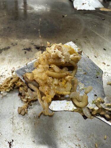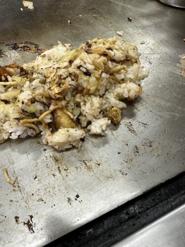 残しておいたお好み焼きとごはんを混ぜてそばめしに!これも美味しいんですよね~!