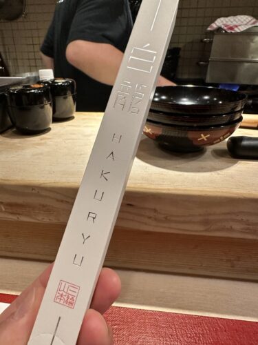 最初のお料理は何かな~と楽しみにしていると目の前に高級そうな箱が。白龍という名の細い素麺なんだそうです。それでにゅうめんを作ってくださいました。