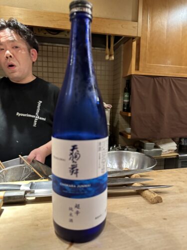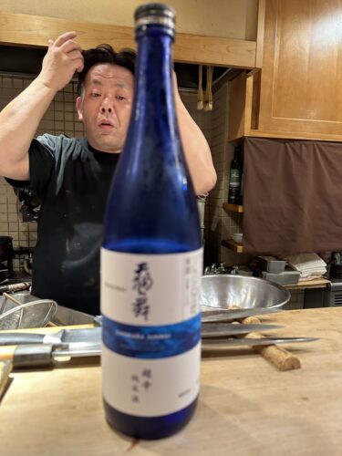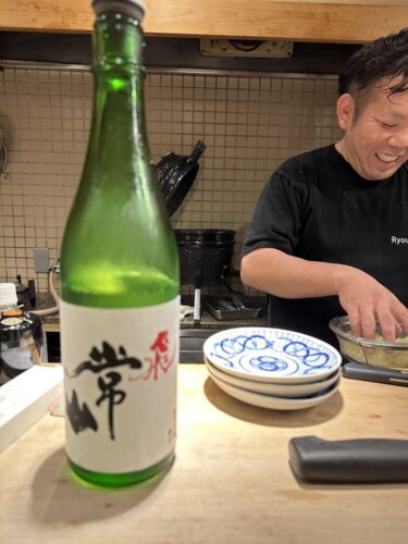 日本酒を合わせてもらった常山をいただきます。ピントがなぜか大将に、、笑。